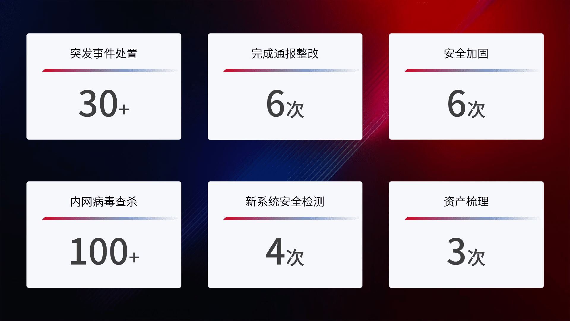 网络安全加固与风险管理:通过技术加固手段,,,如加强区域隔离,,,,缩减攻击内网横向移动的范围;优化现有网络安全管理制度,,,降低网络威胁暴露面,,,,减少被黑客攻击的可能性。。